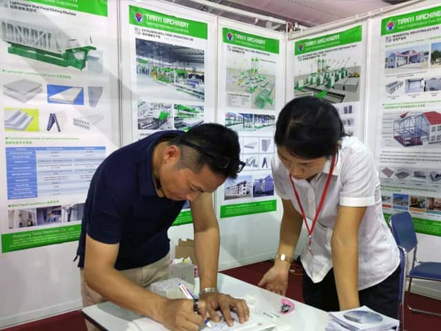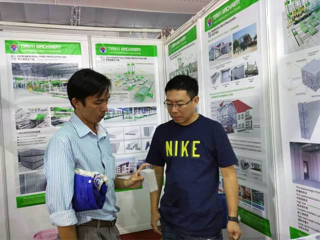 越南是亞洲經(jīng)濟發(fā)展速度的國家之一。近年來,越南正加大對基礎(chǔ)設(shè)施建設(shè)和主要城市居民住宅的改造力度,綠色建筑建材裝備缺口巨大,為適應(yīng)市場需求,天意機械攜綠色建材設(shè)備參展了此次展會。展會期間,外貿(mào)銷售部李經(jīng)理,認(rèn)真對待每位來訪的客戶,詳細(xì)向其介紹天意機械專利產(chǎn)品輕質(zhì)墻板生產(chǎn)線,復(fù)合墻板生產(chǎn)線,保溫裝飾一體化板生產(chǎn)線等產(chǎn)品的優(yōu)勢,以及設(shè)備在東南亞地區(qū)建筑建材市場的影響,展會現(xiàn)場就有多數(shù)客戶,初步簽訂了輕質(zhì)墻板生產(chǎn)線、復(fù)合墻板生產(chǎn)線加工生產(chǎn)訂單。