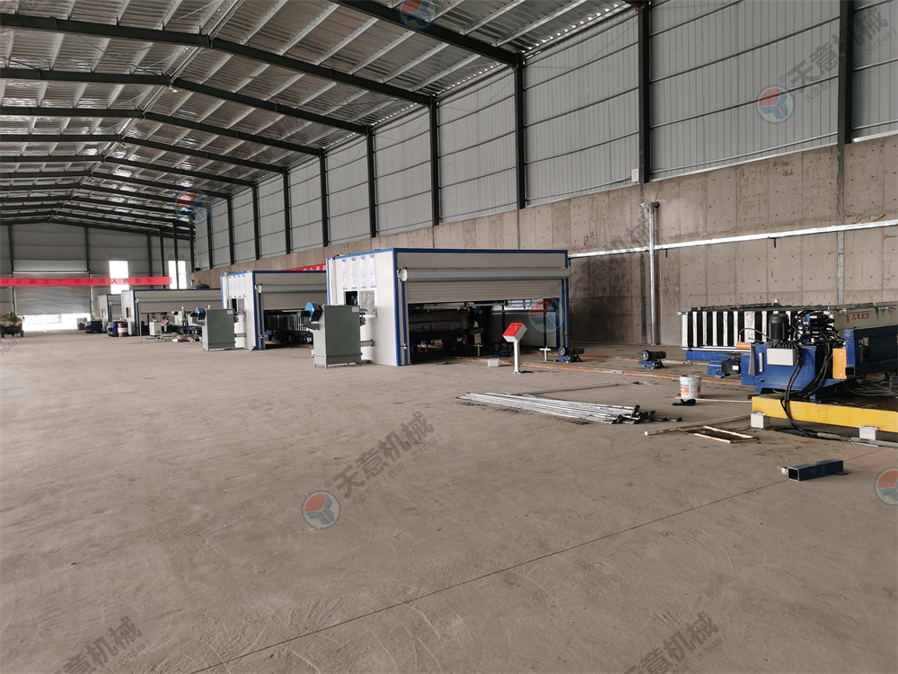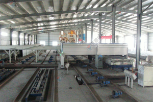 10.墻板機(jī)雙向開合,采用卯榫工藝焊接,確保大板焊接厚度以至,大板經(jīng)四面刨銑,能保證生產(chǎn)線上的模車一至,以便于后期整體上成型,自動(dòng)抽芯機(jī),自動(dòng)涂油機(jī)的安裝。